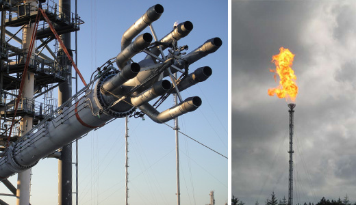 A gas flare, also called flare stack, is a combustion device to burn gas released in flare networks in industrial plants such as refineries, chemical plants, natural gas processing plants, and oil and gas production units, oil or gas wells in onshore and offshore.